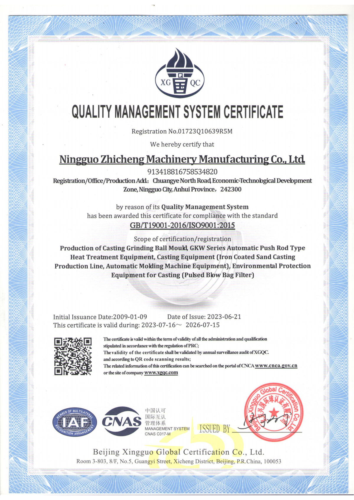 寧國市志誠機械制造有限公司位于安徽省寧國經濟技術開發區創業北路,成立于2008年5月,占地50000平米,是一家集鑄造自動化設備、熱處理自動化設備、鑄造模具研發、制造于一體的民營科技企業。2009年公司加入中國鑄造協會耐磨鑄件分會,被耐磨鑄件分會指定為“耐磨鑄件生產設備研發基地”。公司專業從事鐵模覆砂自動化鑄造生產線、熱處理自動化生產線、澆注機、鑄造模具、環保除塵及煙氣凈化設備的研發、生產與銷售.